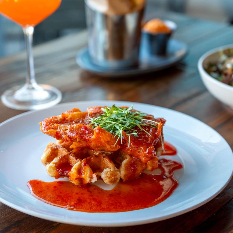 Tossed breaded chicken, topped with wide awake sausage gravy, (1) farm egg.