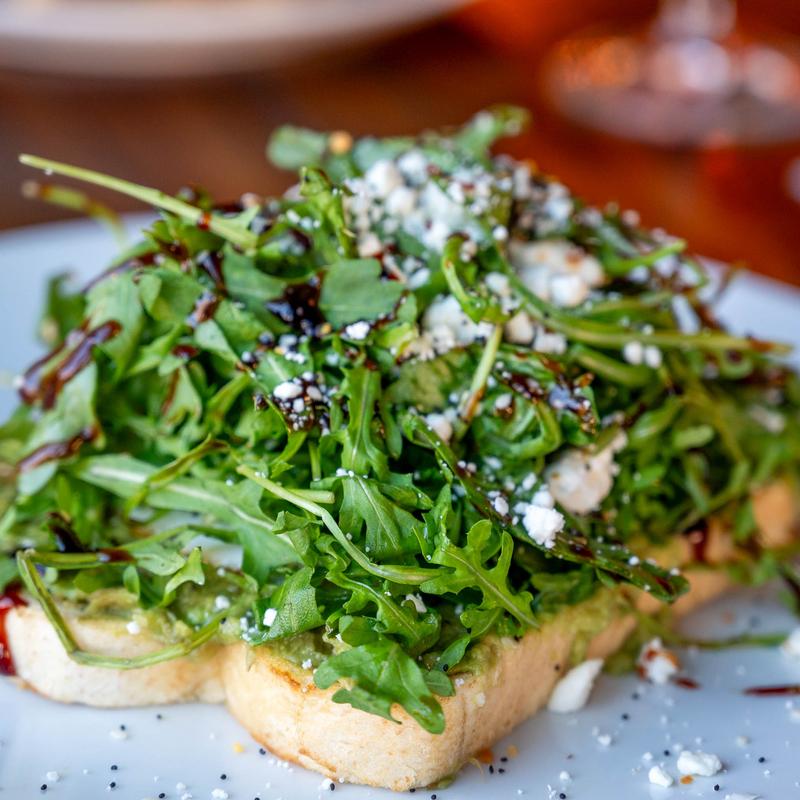 Farm egg, avocado, toasted sourdough, arugula, goat cheese, balsamic reduction, everything seasoning.
